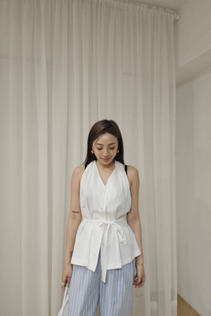 挖肩排釦美背背心(附綁帶)