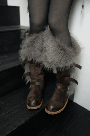 (老闆價)內毛毛扣帶高筒靴(闆娘.花花清單)