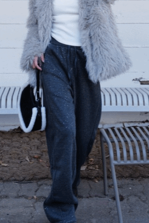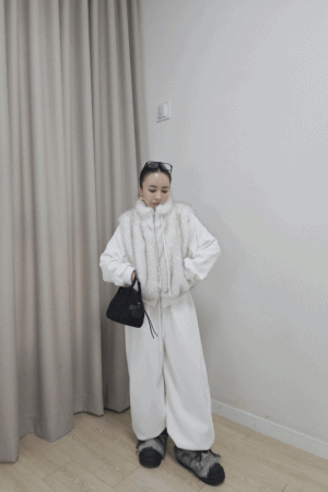 (老闆價)綁繩毛毛拼棉質上衣+寬褲套裝