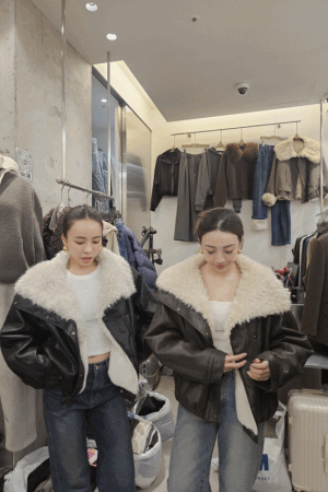 (老闆價)大翻領毛毛短版外套(花花清單)