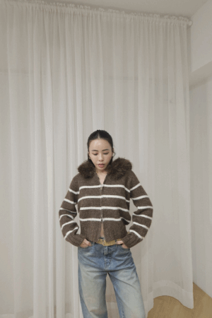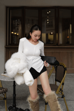 毛毛拼接一字領上衣(闆娘.花花清單)